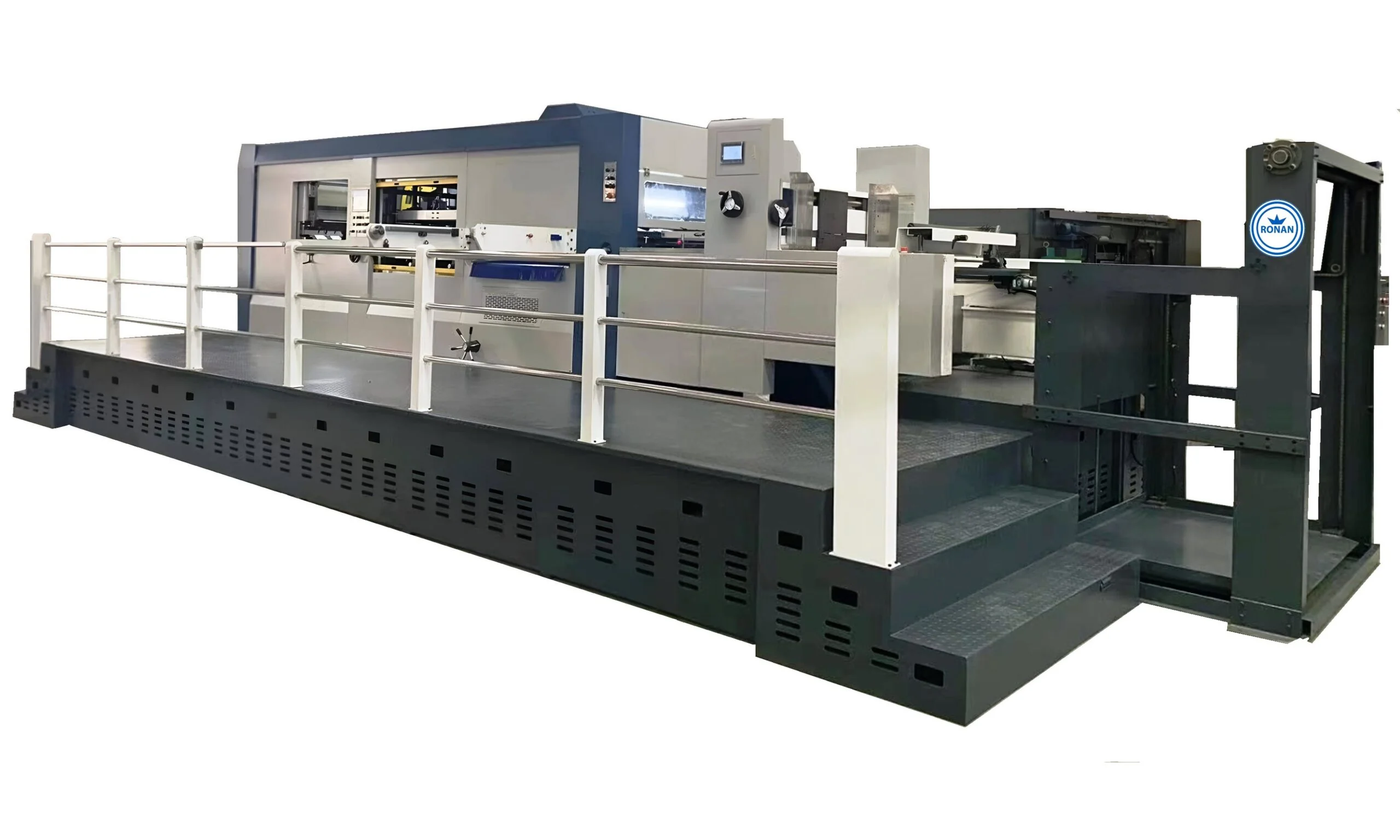 2) Kağıt taşıma yolunun tüm süreci denetlenir ve izlenir. Kalıp kesme plakası çerçevesi merkezi pozalama sistemine sahiptir.