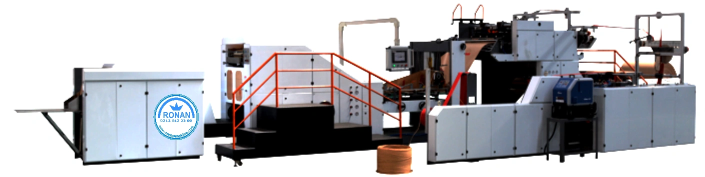 Bu makine, kulplu kağıt poşetleri tam otomatik olarak yapmak için